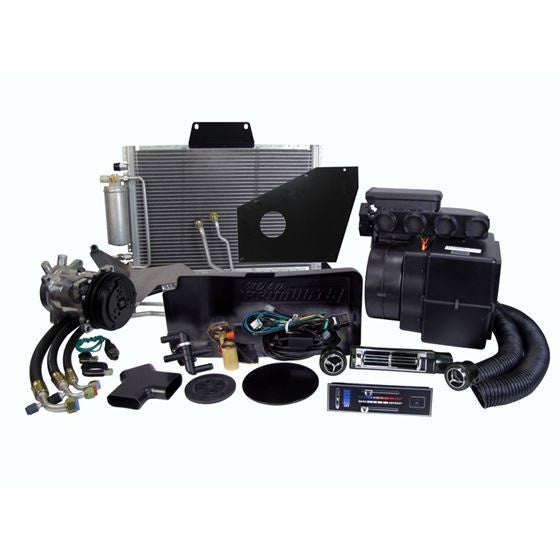 Complete A/C setup. Includes all needed hoses, brackets, controls or components to modify your controls, compressor, condenser, evaporator, dryer and ducts. This kit will have under dash mounted a/c vents. Please include engine size and style, short or long water pump, preferred compressor location (drivers or passenger side), and R12 or R134a refrigerant (R134a is recommended).;