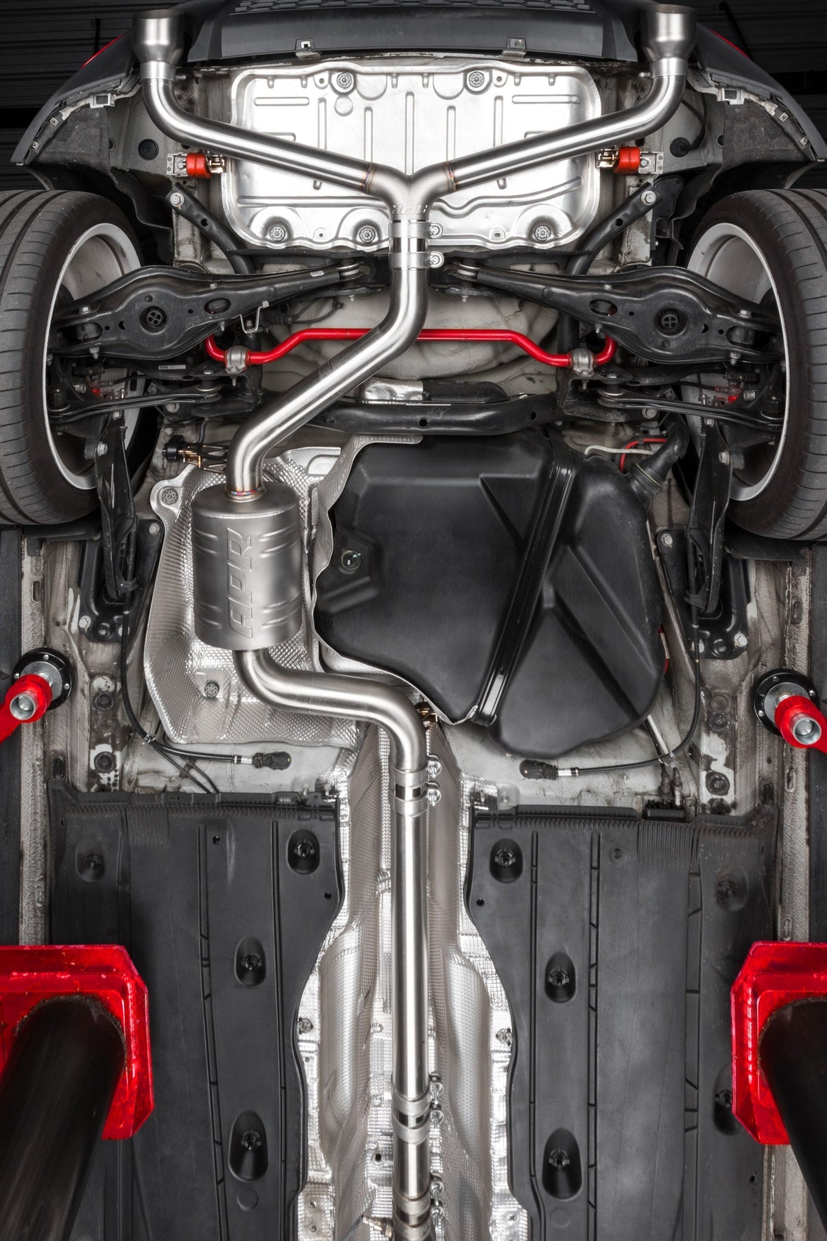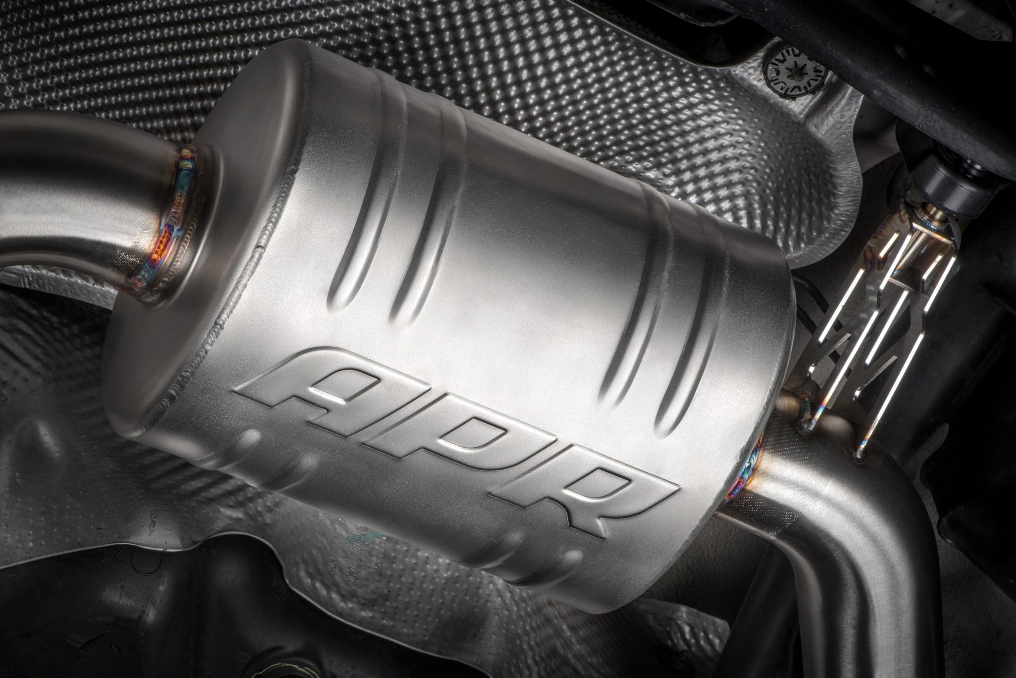 The APR Catback Exhaust System personalizes your vehicle's looks, sound and performance. Beautifully hand-crafted T304-stainless-steel components adorn the system with stunning TIG-welding throughout. Our straight-through brushed-finished mufflers are configurable to your desire, smoothing the exhaust note to a deep growl, without adding restrictions, rasp or drone. Strong high-quality bracketry and OEM-style clamps hold the system steadily in place, making the install or removal a snap, and fitment simple, yet precise. A cast 3" to dual 2.5" rear splitter creates an ultra-smooth transition, steadily feeding exhaust gasses out of the system, while looking tidy from under the rear bumper. Finally, removable 4" polished slash-cut exhaust tips finish the system, adding a classy motorsport-inspired touch to the rear of the vehicle.