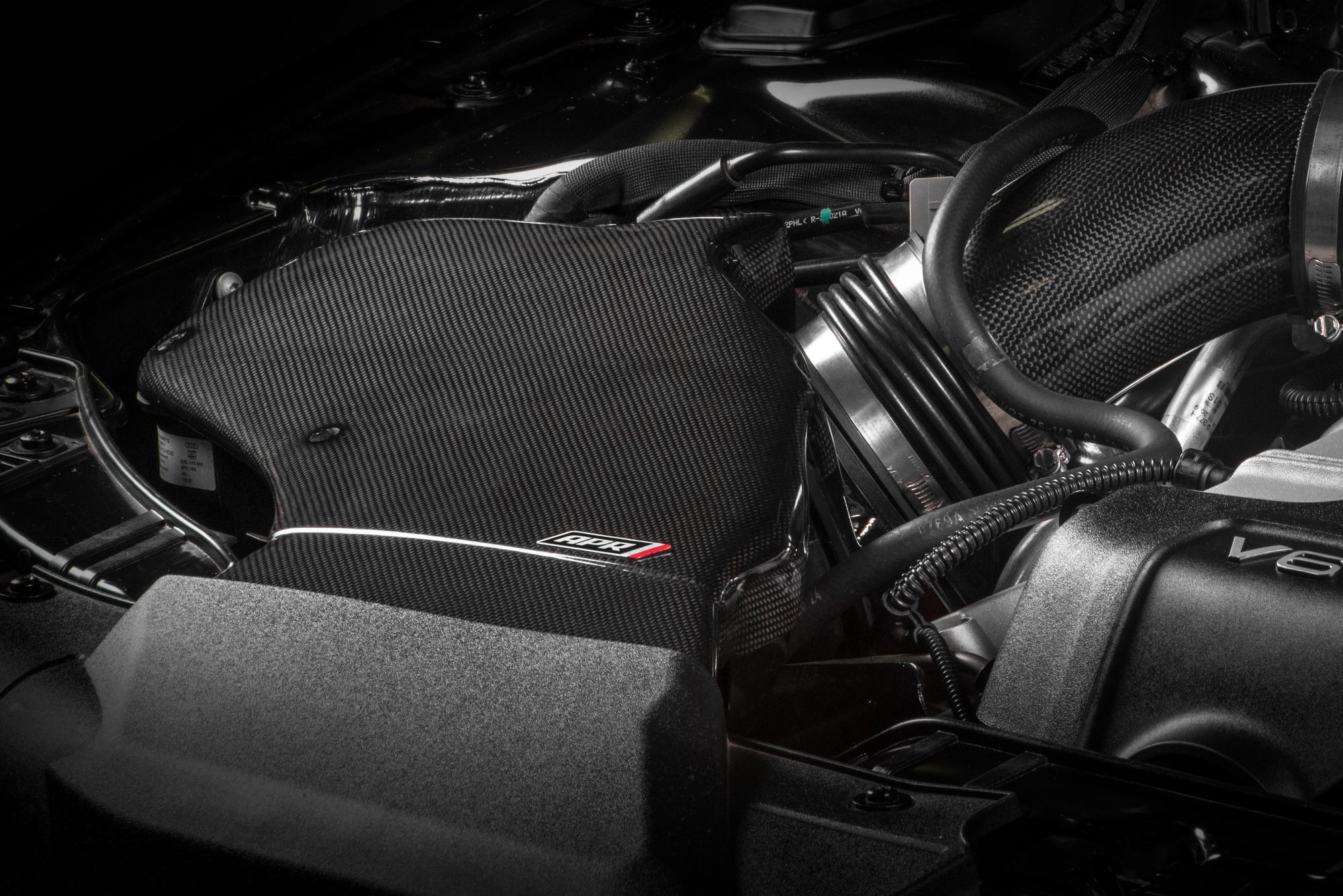 The APR Closed Carbon Fiber Intake System is an attractive, high-performance upgrade designed to increase performance by letting the engine breathe more freely. Performance is optimized by improving mass airflow through the system, while also adequately filtering the incoming air. The system provides a direct airflow path through the system to the filter, and removes the rubber inlet snorkel, which has been known to collapse under load, and devastate power deliver. Expect increased horsepower, torque, sharper throttle response, enhanced fuel economy, enhanced engine sound, lower intake air temperature (IAT) and a more attractive engine bay! Lastly, 3.0T Supercharged engine customers can take advantage of a larger rear charger inlet pipe, which maximizes mass airflow, and removes a factory sound dampening resonator.