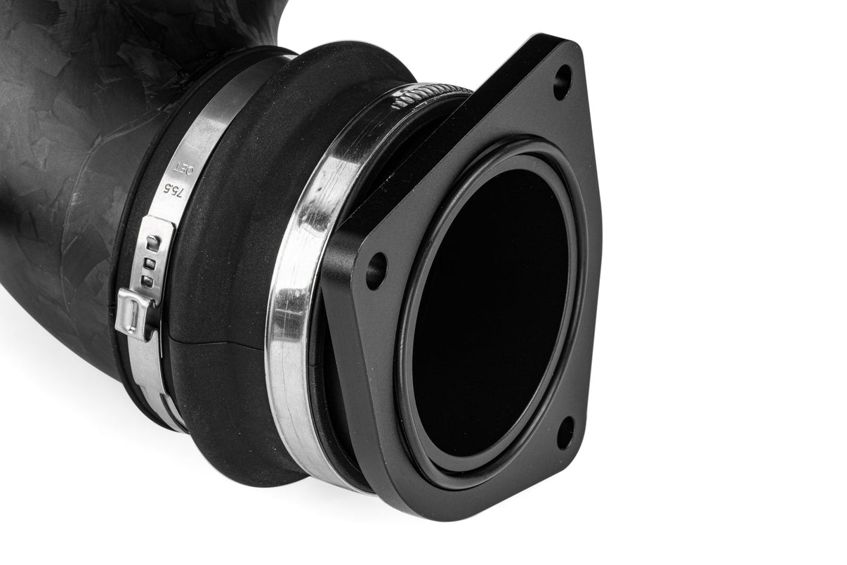 Our 4.0T EA825 V8 Intake System for SUV models provides an OEM+ appearance upgrade with a single-body carbon fiber intake plenum in a gorgeous matte forged carbon finish that flows up to 22% more than stock. Enhanced turbocharger inlets feature bell mouth profile into the factory turbocharger to promote flow and allow for easily upgrading turbos in the future. The system features a proprietary performance intake filter with a high flow cotton gauze filtration material and flow-bench optimized design that enhances airflow through the system and into the intake plenum. The filter flows up to 12% more than stock and sees reduced pressure drop at the same flow rates. This puts less strain on the turbochargers, and maximizes performance, all while sharpening throttle and turbocharger response. This is the ultimate intake for the 4.0T EA825 V8 engine!