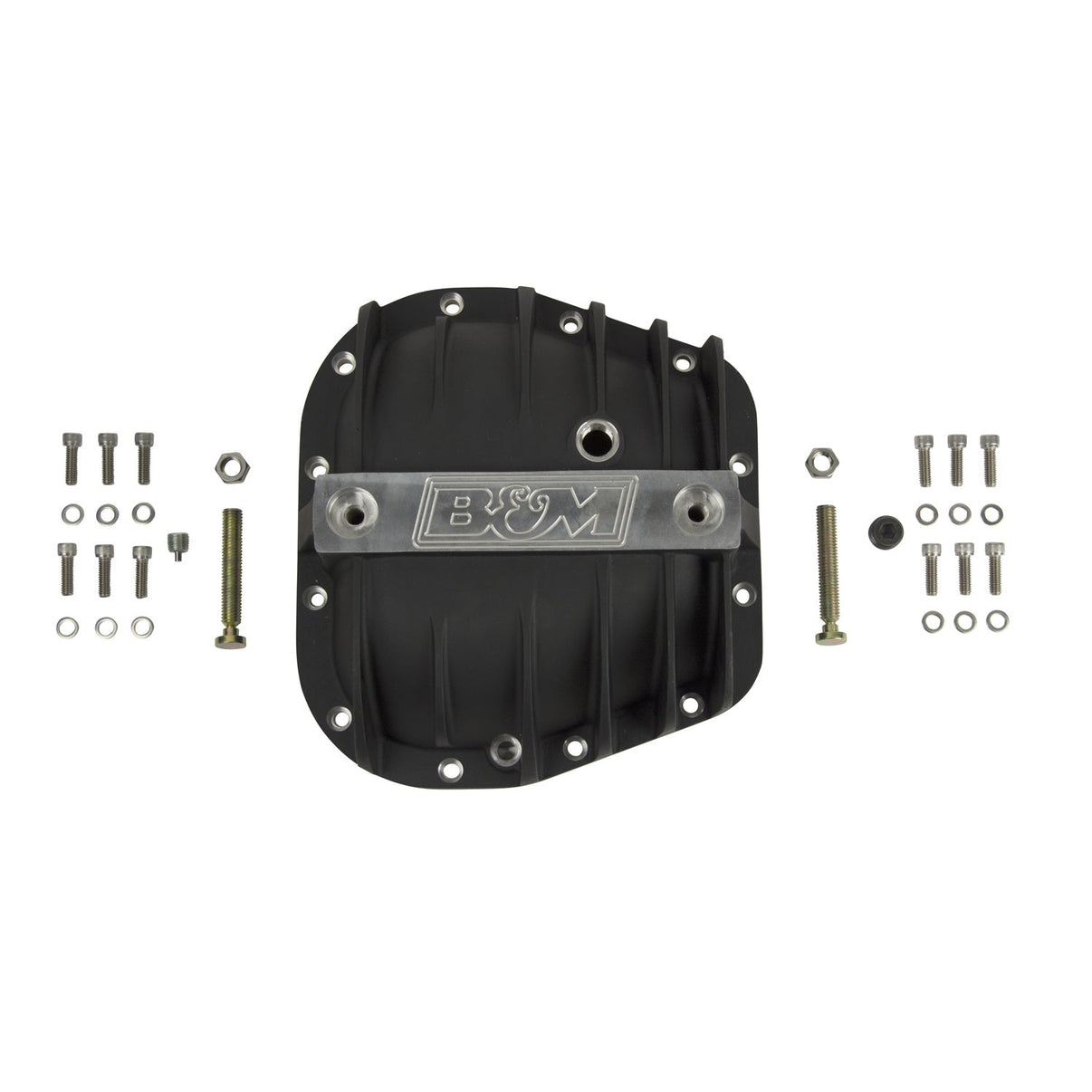 Our engineers designed the line of Hi-Tek differential covers to not only look good but address a number of weaknesses of the factory-stamped steel covers. First, they started by constructing the covers of thick A356.0-T6 aluminum, which dissipates heat much faster than the factory steel unit keeping the fluid temperature lower under high-stress loads vs. a steel cover. Then for added durability, we added a reinforced center bar for extra strength along with load bolts to help prevent bearing cap deflection under severe loads. The internal shape of the cover retains the smooth round back internally to help keep the fluid flow going over the ring gear to properly lubricate the gears and bearings. Additional features include a magnetic drain plug for catching ferrous metal particles, MIL-Spec (MIL-A-8625) black anodized finish, machined B&M logo, and all necessary hardware and easy-to-follow detailed instructions for a quick and simple installation you can do at home. Note: Gasket not included. Refer to the ID guide and measurement diagram for specifications.