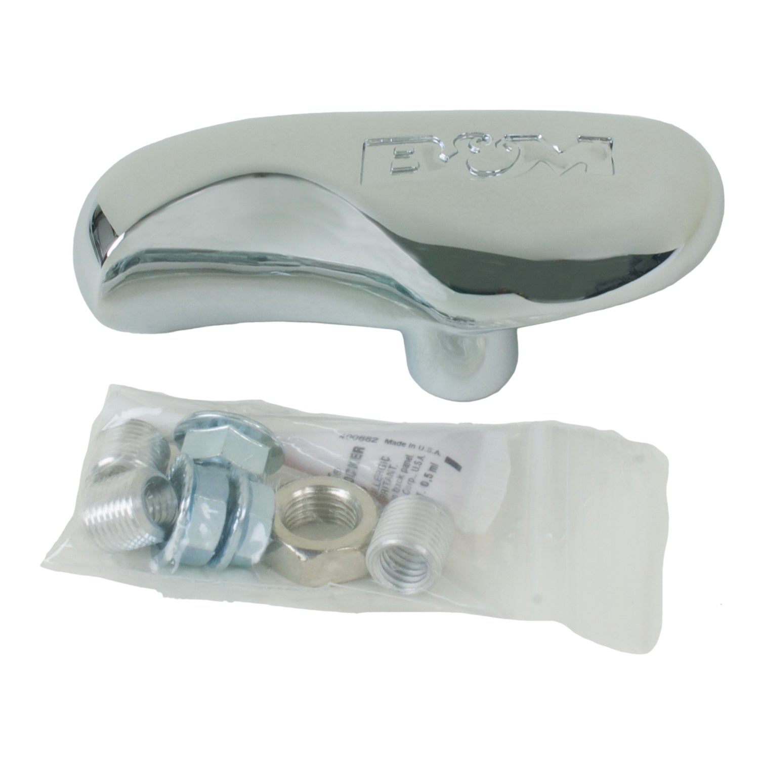 This is the Hammer Head shift handle that comes standard on B&M Hammer shifters. The Hammer Head shift handle is triple chrome plated and has a unique style with a ergonomic feel for shifting gears. The handle fits most B&M automatic shifters and includes various SAE thread adapters to fit 3/8-16, 3/8-24, 5/16-18 & 1/2-20 threaded shift sticks.