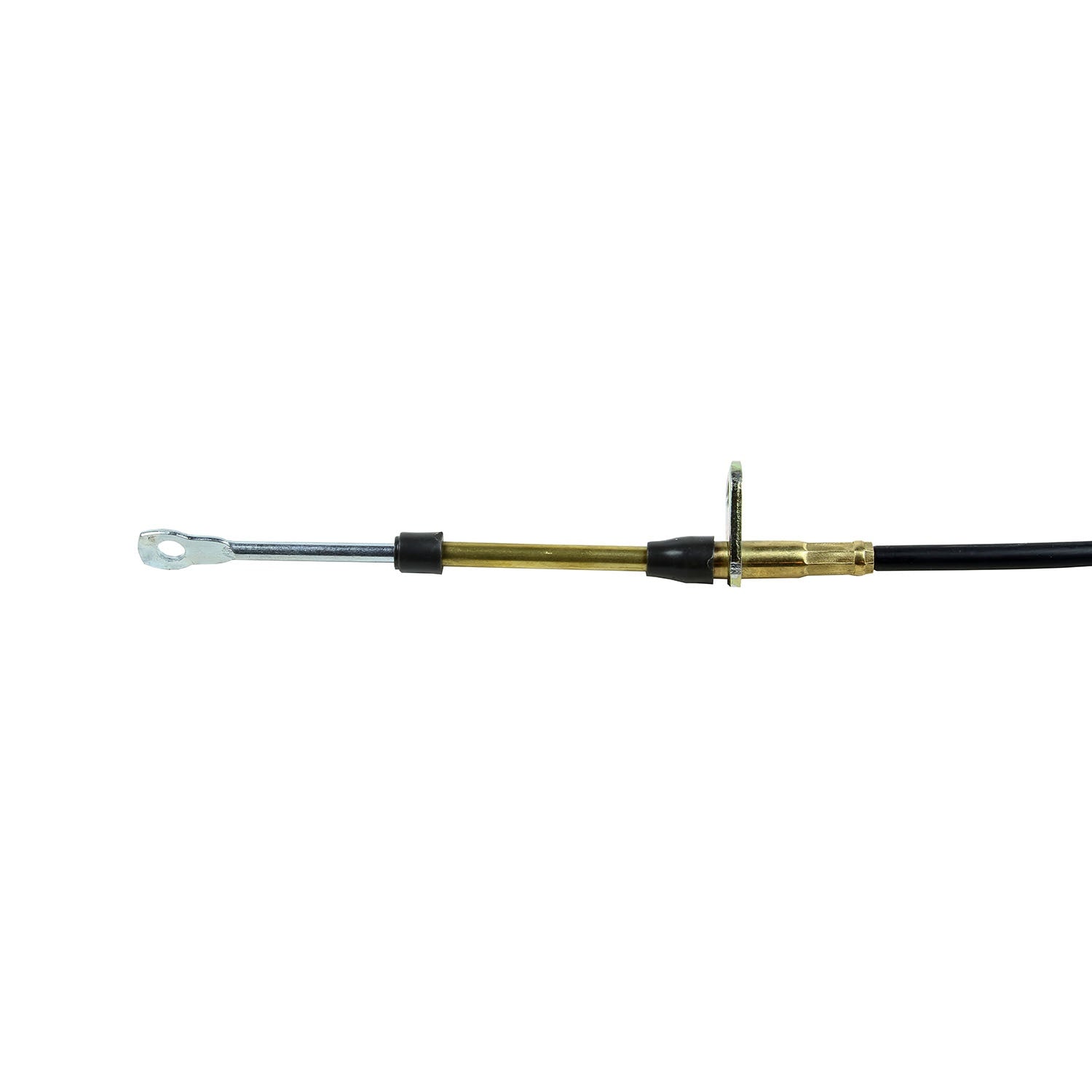 B&M performance shifter cables are available with a black cable housing for most B&M street shifters. This is our 5-foot performance replacement shifter cable for most B&M automatic shifters. It is properly clearanced to reduce backlash and has a .250-inch 'long-lay' (stiffer, less prone to kinking) black outer jacket for durability. The cable features an eyelet at one end to connect to the shifter and a 10-32 threaded end at the transmission side of the cable and has a 2.50-inch stroke. This is the standard cable supplied with most B&M Shifters.
