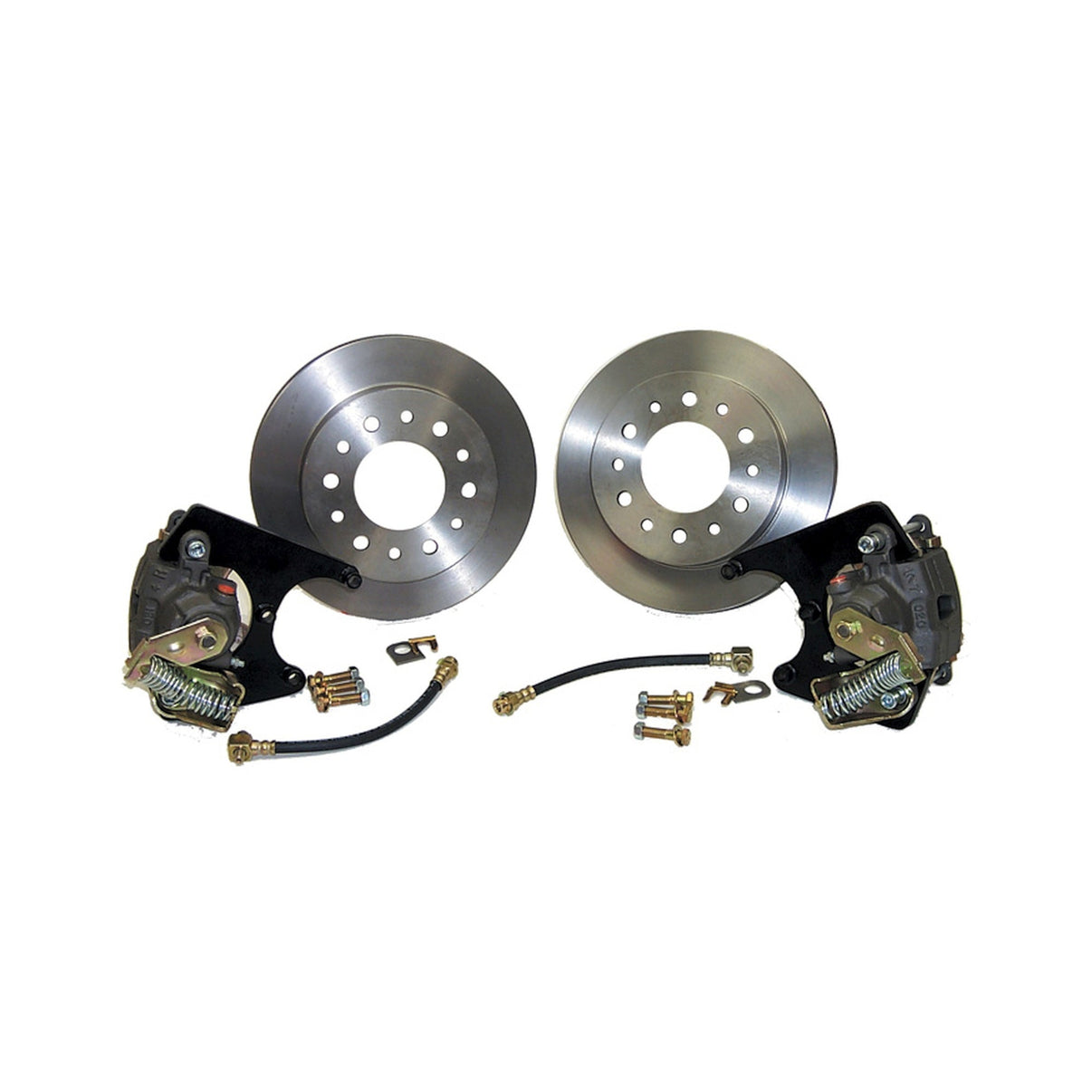Brothers now offers you the option of upgrading the rear of your 1/2-ton truck to disc brakes. When converting to rear disc brakes, make sure to use a 4-wheel disc brake proportioning valve. DOES NOT WORK WITH STOCK WHEELS, DOES NOT WORK ON REARENDS WITH PRESSED ON BACKING PLATE
