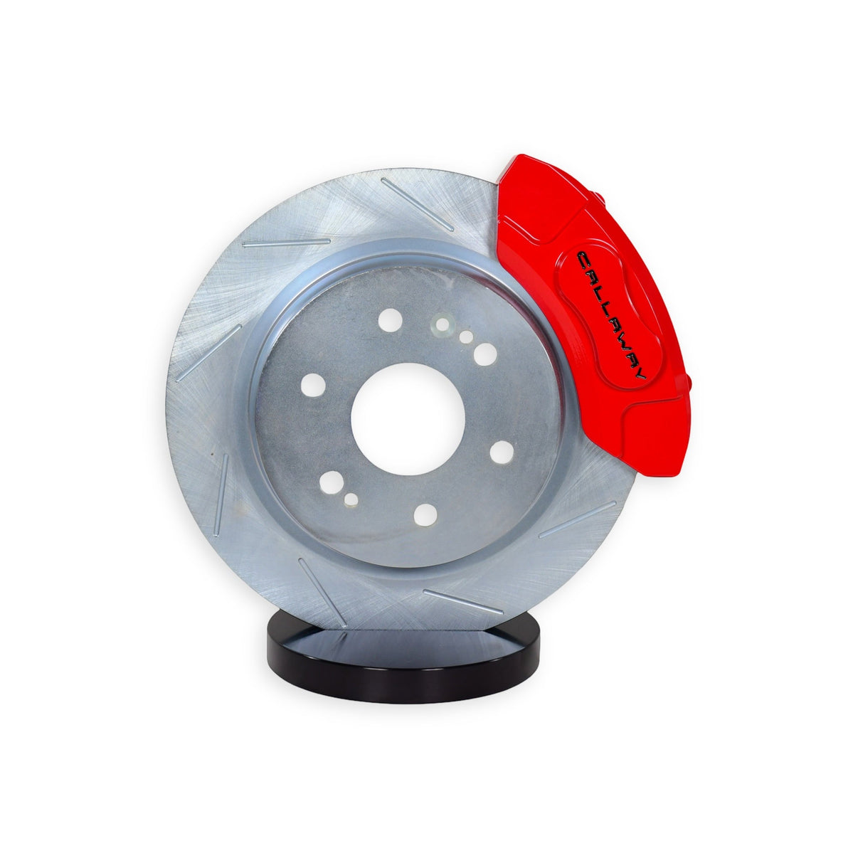 Baer Claw performance rotors are a great way to improve your vehicles braking performance and overall appearance. The kit includes a pair of direct replacement rotors with a slot only friction surface providing escape route for the gasses and dust that form between the pad and rotor during braking providing a more consistent pedal feel and reduced brake fade. These slot only rotors are zinc-plated to help resist rust and corrosion and are paired with a set of rear caliper covers with a red powder coated finish and Callaway logo providing a brilliant finish behind open center wheels.