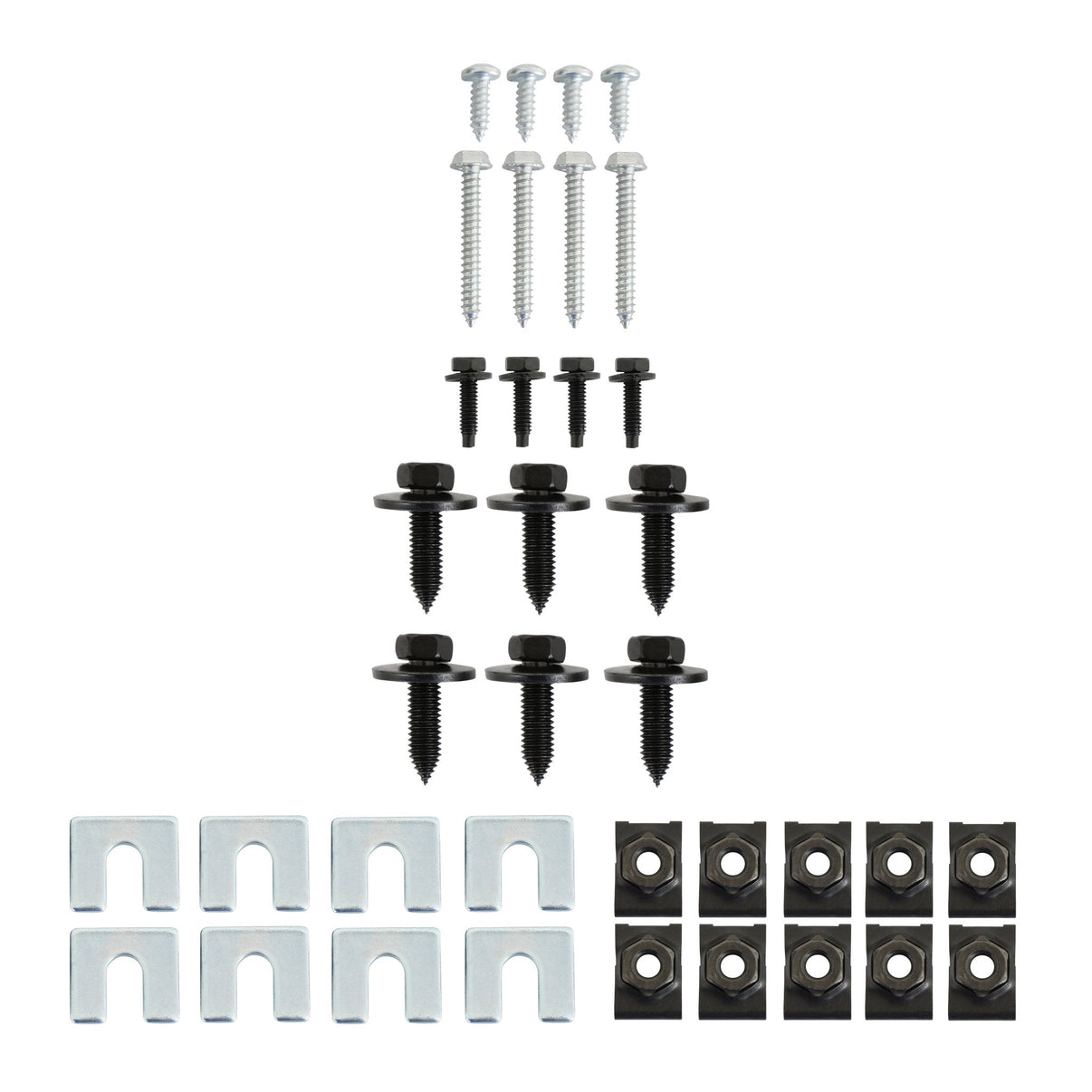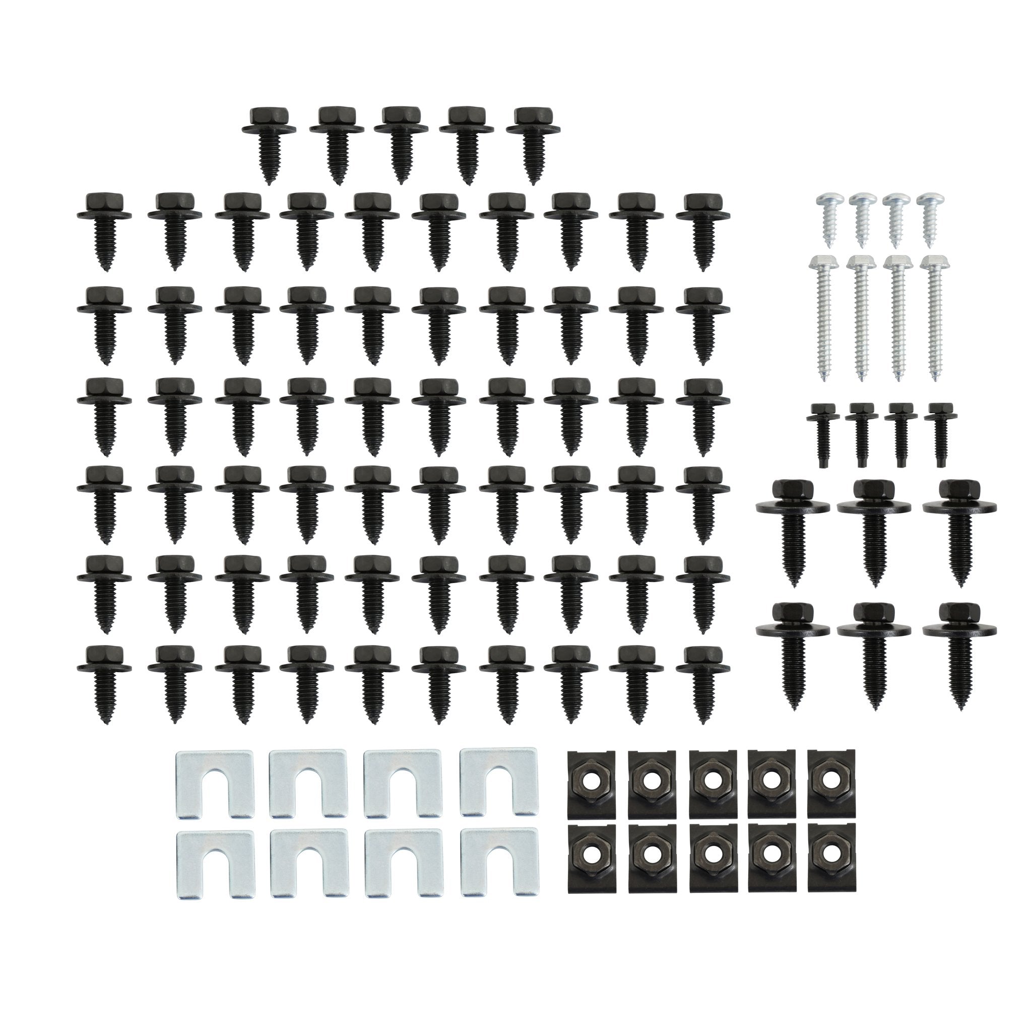 - Includes fasteners for: Front fenders, inner fenders, cowl panel, hood latch, latch plate, latch support, radiator support