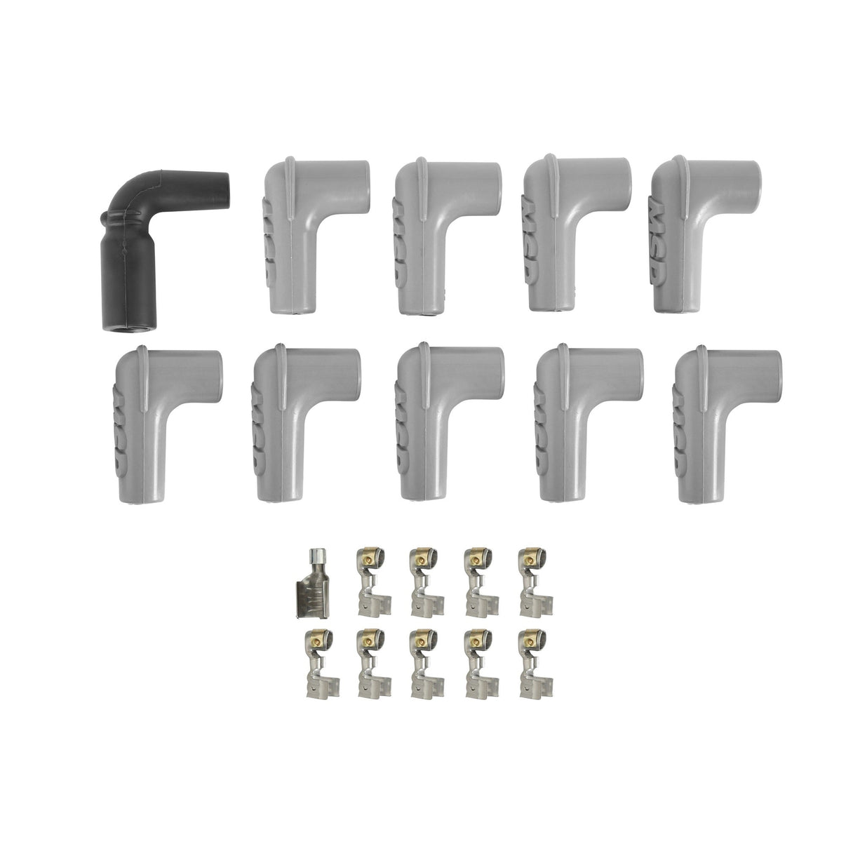 Our Universal spark plug wire sets come with the spark plug terminal and boot installed with the other end open. Distributor cap boots and terminals are included so you can cut the wire to the desired length, then install the terminal with the supplied Mini-Stripper-Crimper. It's a little more work, but in the end it will be worth it.