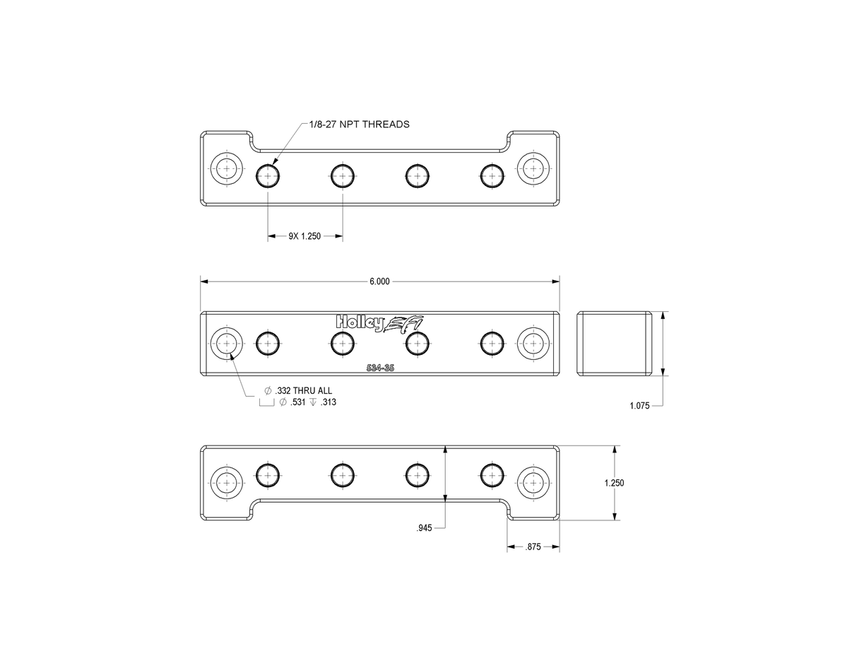 Fits HOLLEY EFI 1/8-27 NPT SENSOR BLOCK - HOLLEY EFI 1/8NPT SENSOR BLOCK.