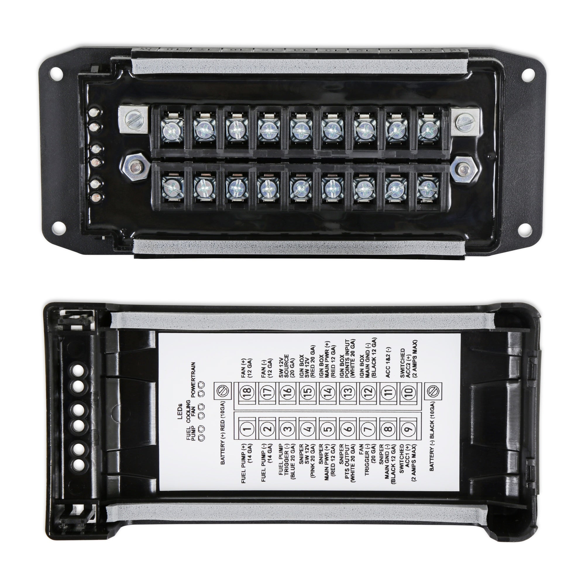 The #1 selling EFI conversion just got better…again! We’re bundling our top selling Sniper 2 packages and passing along maximum savings! Available for small block Chevrolet, big block Chevrolet, and 8.2-inch deck small block Ford (5.0 base), these kits include a HyperSpark distributor, HyperSpark coil, and a HyperSpark 2 ignition box. Coupled with a 3.5” or 5" color LCD touchscreen handheld, Power Distribution Module (PDM), and either a base or master (in-line fuel system) Sniper 2 kit, these are the most complete Sniper EFI conversion kits ever offered by Holley. The PDM module was specifically designed to provide the easiest wiring experience for Sniper 2 kits that are paired with a HyperSpark ignition. Simply slide the stripped wire ends under the positive lock connector and tighten down the set screws. Battery power, ground, and a switched 12V source are all that's required from your vehicle to power the PDM and your Sniper 2 system.