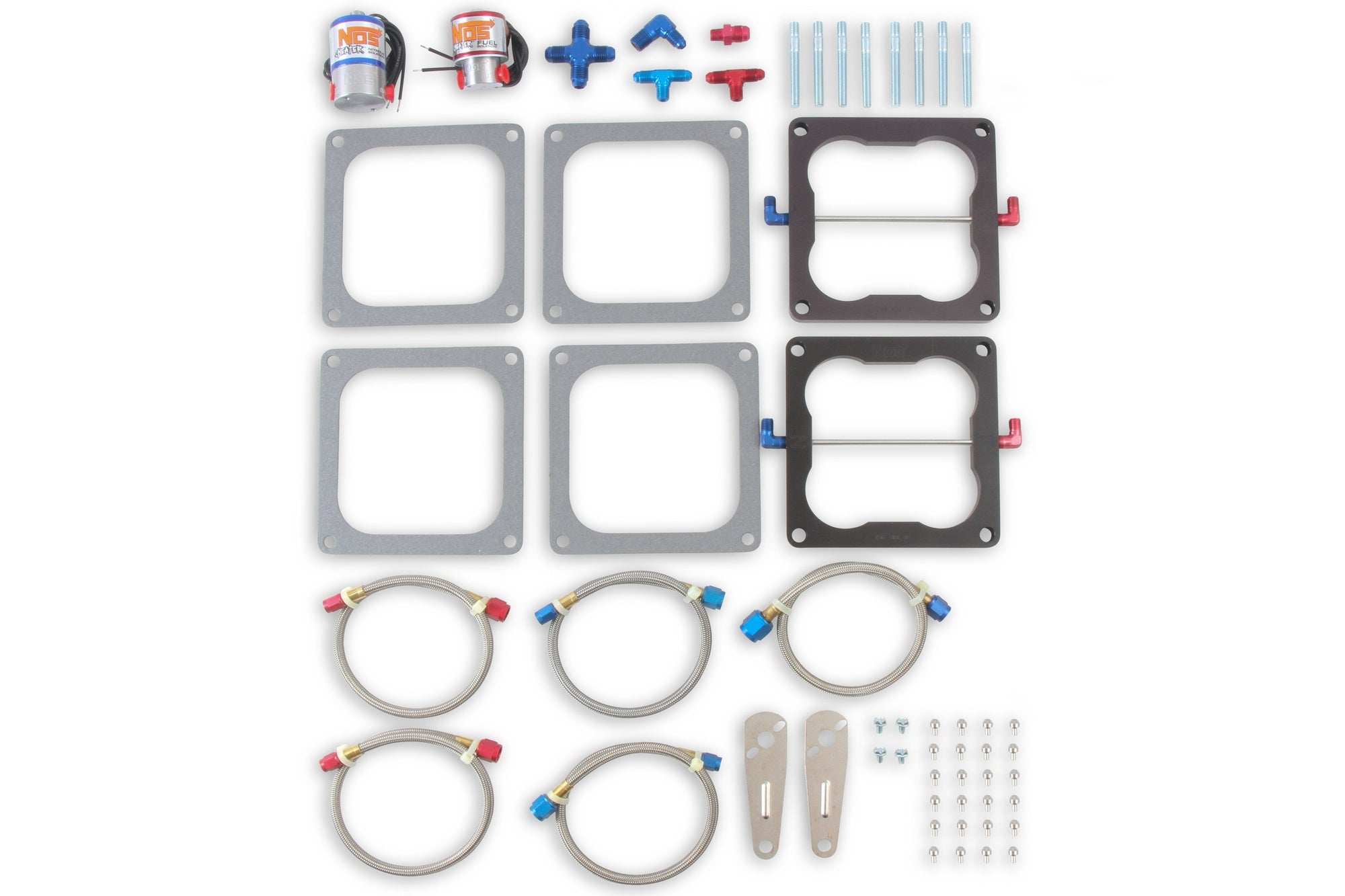 The Pro-Shot Fogger upgrade kits take your Pro-Shot Fogger system and converts it into a two stage Pro-Shot Fogger 2 kit. The dual stage feature allows the user to jet the first stage for traction off of the line, then in the second stage utilizing a Cheater spray bar plate, add maximum mid-range and top-end power. Through testing, NOS has optimized the jetting of the Pro-Shot Fogger 2 upgrade kits for improved power and performance. Available in single four or dual four applications in either a Holley® Square Flange or Holley Dominator® bolt pattern, the Pro-Shot Fogger 2 upgrade kits come complete with NOS new improved Cheater nitrous and fuel solenoids, Cheater spray bar plate(s), jetting and all the necessary hardware to upgrade your Pro-Shot Fogger into a dual stage Pro-Shot Fogger 2 system.