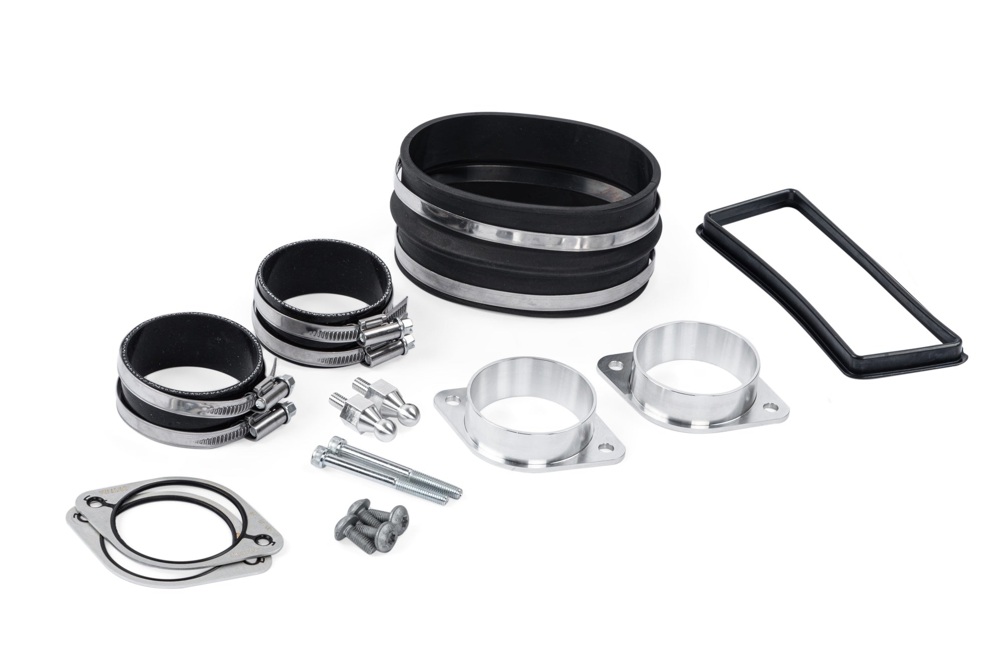 Vores sæt indeholder alt, hvad du behøver for at bolte den på og køre. Ingen ny tuning er nødvendig for at køre dette produkt, og produktet er emissionsvenligt. Vi inkluderer helt nye OEM-pakninger og alle de møtrikker, bolte og klemmer, der er nødvendige for en nem installation. Endelig, takket være vores billet-turboindløbsadaptere, er dette det eneste indsug, du nogensinde får brug for. Hvis du senere opgraderer din turbo, kan nye, større adaptere installeres for at tilpasse sig de større indløb ved blot at udskifte billet-adapterne!