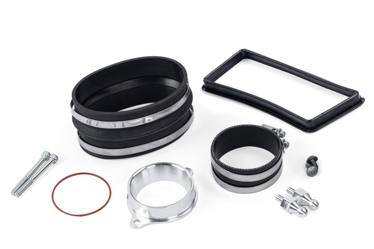 Vores sæt indeholder alt, hvad du behøver for at bolte det på og køre. Ingen ny tuning er nødvendig for at køre dette produkt, og produktet er emissionsvenligt. Vi inkluderer alle nye OEM-pakninger og alle de møtrikker, bolte og klemmer, der er nødvendige for en nem installation. Endelig, takket være vores billet-turboindløbsadapter, er dette det eneste indsug, du nogensinde får brug for. Hvis du senere opgraderer din turbo, kan en ny, større adapter installeres for at tilpasse sig det større indsug ved blot at udskifte billet-adapteren!