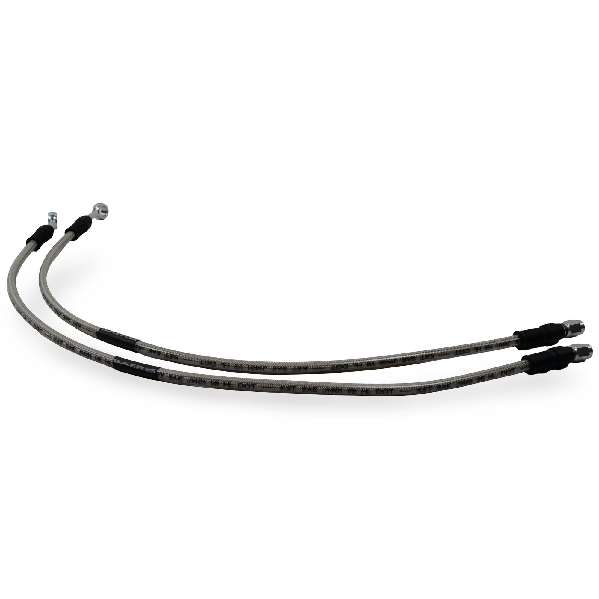 Fits Baer Brakes Hydraulic Hose Set - 25.25" Long Braided Hose Set with 3AN Female Straight x 10mm 20° Banjo Ends.