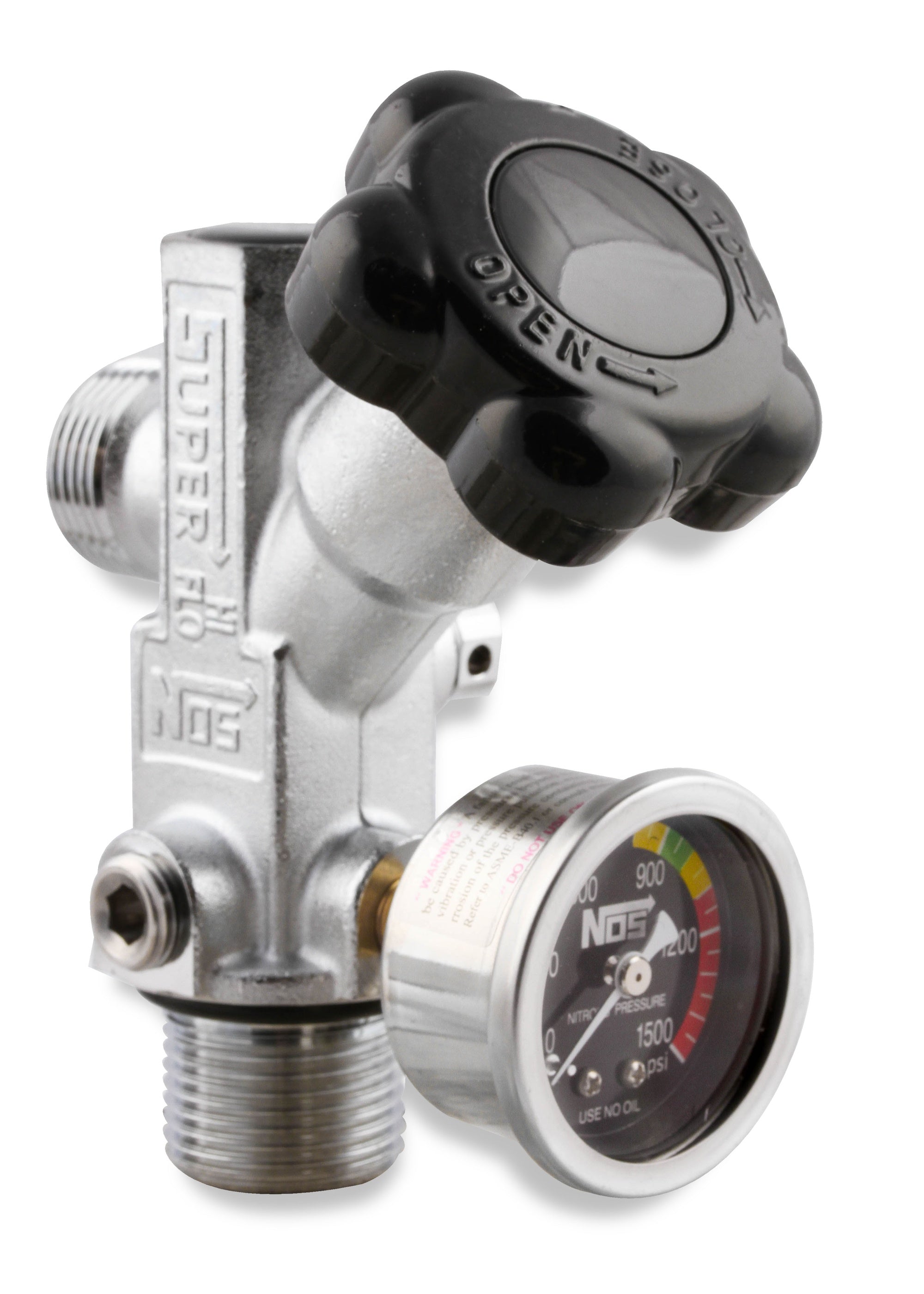 Vores NOS Super Hi-Flo-ventil er en af de bedste på markedet! Nøglefunktionerne inkluderer en 1/8" NPT-måleport, 1/4" NPT-tilbehørsport, stor udløbsport, CGA #660-udløbsgevind, en O-ringstætning og store indvendige porte. Denne ventil kan understøtte systemer på op til 500+ hk. De nyeste versioner af NOS Super Hi-Flo™-ventilen er identificeret ved 45°-håndhjulet og måleporten. Denne ventil er en direkte erstatning for alle NOS-flasker på 5 lbs og derover.