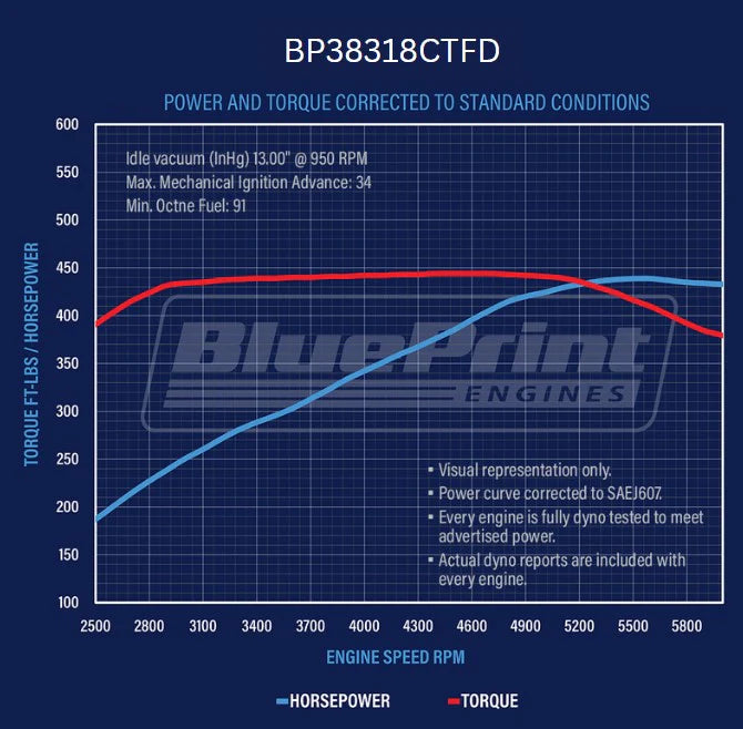 Fits BluePrint Engines GM 383 C.I.D. 436 HP Dressed Stroker Long Block EFI Crate Engine.