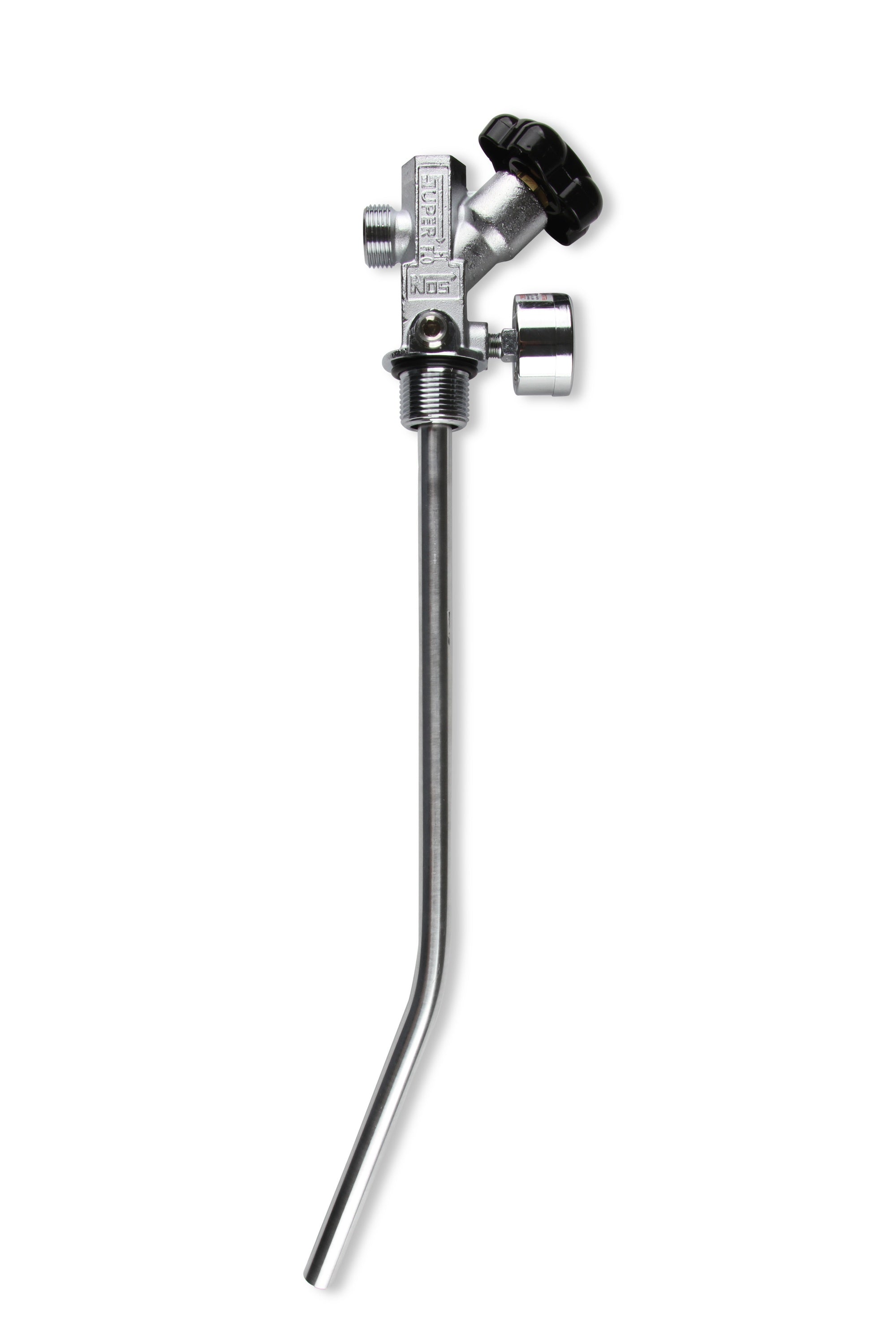 NOS propose désormais des ensembles de vannes de bouteille Super Hi-Flo avec tube de siphon et manomètre de pression de protoxyde d'azote préinstallés. C'est le moyen idéal de passer au système de vanne et de tube offrant le débit le plus élevé de la gamme NOS. Les principales caractéristiques de la vanne de bouteille comprennent un port de manomètre 1/8" NPT, un port accessoire 1/4" NPT, de larges orifices internes et de sortie, ainsi qu'un joint torique. Notre tube de siphon à visser de 3/8" de diamètre intérieur, fabriqué en aluminium 6061, peut remplacer un tube à raccord à compression plus ancien. Enfin, nos ensembles incluent un manomètre de protoxyde d'azote de 1-1/2" à cadran bleu ou noir, avec graduations colorées faciles à lire et aiguille blanche. Ces manomètres possèdent un boîtier en acier inoxydable et des composants internes en laiton.