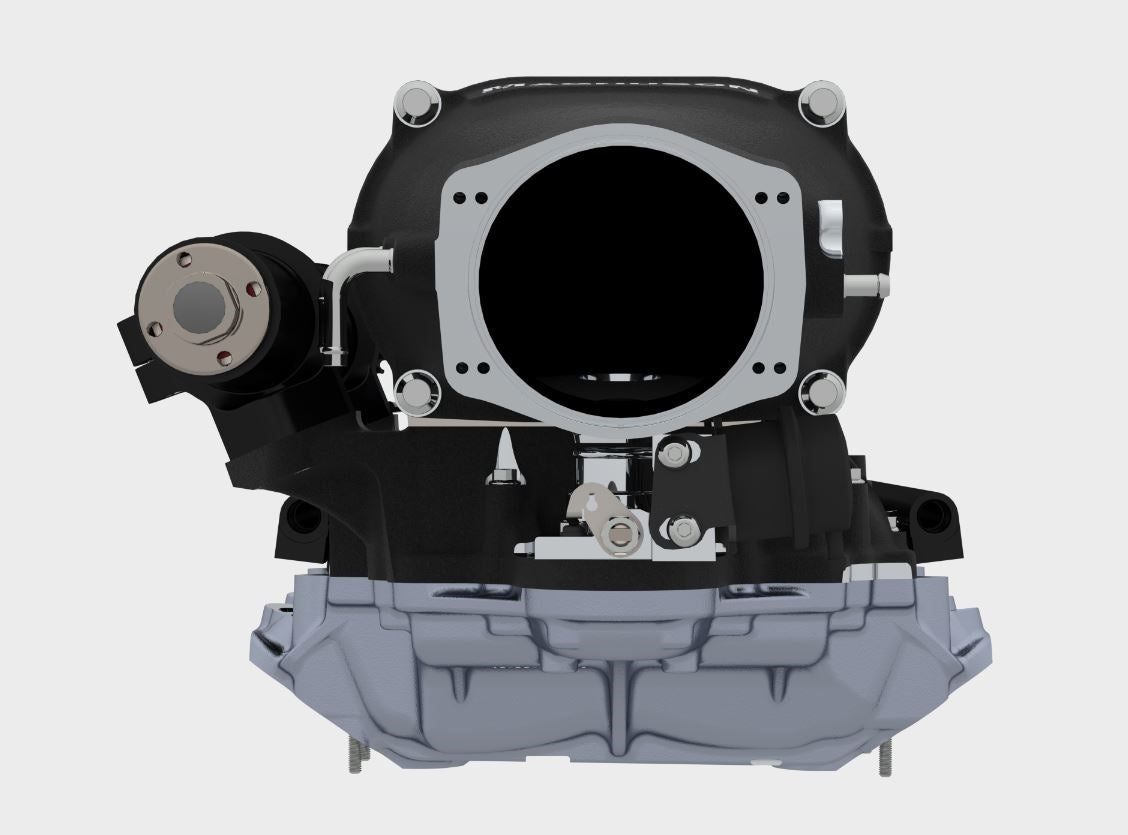 Conçu pour les moteurs V8 GM à petit bloc équipés de culasses de type LS3. La compatibilité avec le véhicule est de la responsabilité de l'utilisateur. L'installation peut nécessiter un nouveau capot, ou une découpe dans le capot pour le compresseur, ainsi que d'éventuels ajustements du pare-brise.