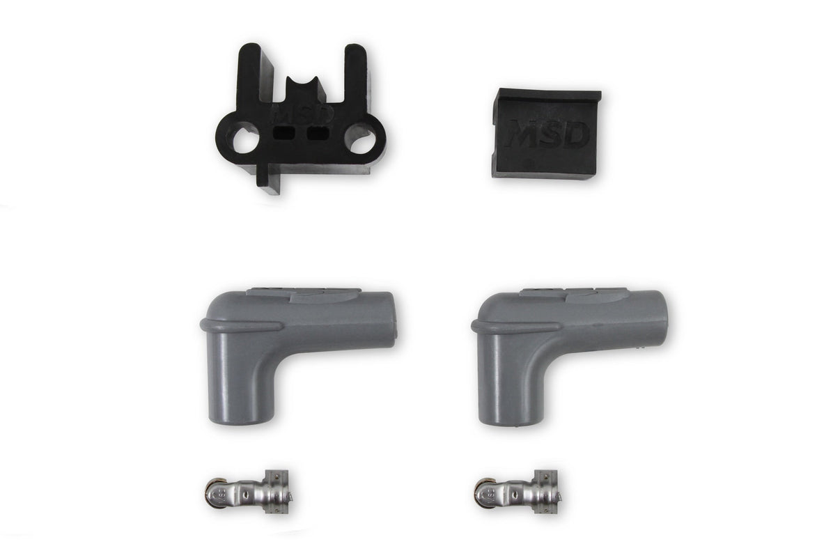 Le câble de 8,5 mm est disponible en vrac et en kits universels. Les kits universels sont fournis avec la borne et le capuchon de bougie déjà installés ; il suffit ensuite de couper le câble à la longueur voulue et de sertir la borne côté bobine. MSD propose même une mini-pince à sertir pour un sertissage optimal.