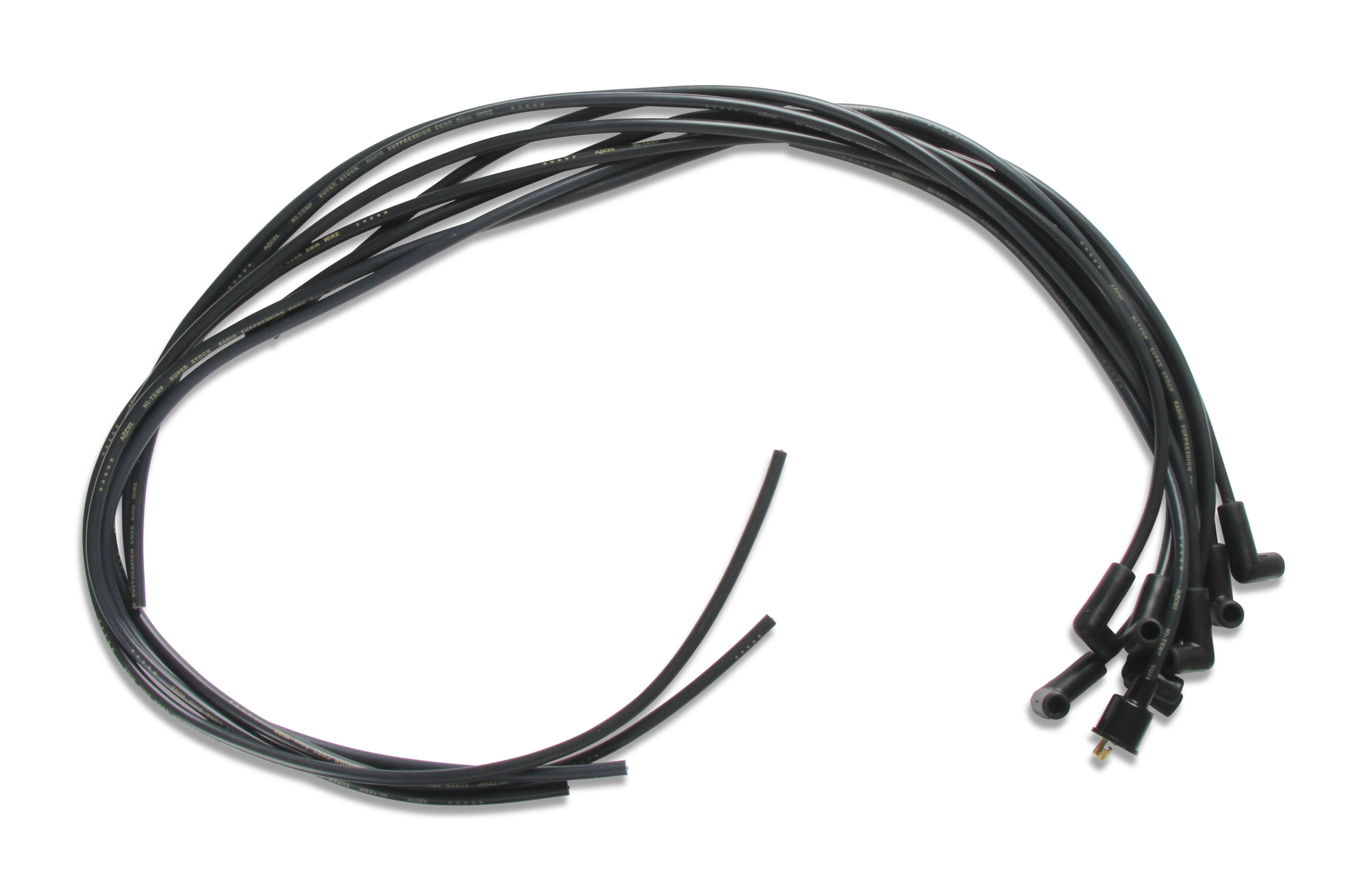 Les faisceaux de câbles d'allumage ACCEL SuperStock série 4000 sont conçus pour optimiser un système d'allumage d'origine et fournir une puissance d'étincelle élevée pour une utilisation routière. La gaine en silicone, résistante à 232 °C (450 °F), est extrudée sur une tresse en fibre de verre robuste et serrée. Cette tresse est appliquée sur une isolation interne en EPDM (éthylène-propylène-diène monomère) à haute rigidité diélectrique, garantissant des performances supérieures aux spécifications SAE.