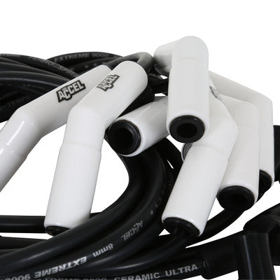 ACCEL propose désormais la solution aux capuchons de bougies brûlés grâce aux kits de câbles céramiques Extreme 9000. Le câble de 8 mm à âme en spirale ferroélectrique est maintenant équipé de capuchons en céramique côté bougie. Ces capuchons résistent à des températures allant jusqu'à 1 100 °C (2 000 °F). Idéal pour les collecteurs d'échappement aux tolérances serrées, les compartiments moteur exigus ou les camping-cars dont les capuchons fondent sous l'effet de la chaleur. Ce câble à double paroi en silicone ultra-résistant aux hautes températures supporte une température de pointe de 315 °C (600 °F). Son âme en spirale ferroélectrique de 500 ohms/pied a été conçue pour une utilisation haute performance. Il assure une excellente transmission de l'énergie aux bougies tout en offrant une suppression optimale des interférences radioélectriques (RFI/EMI). Les bornes de bougies en acier inoxydable garantissent une énergie d'étincelle maximale. Les câbles sont pré-assemblés aux longueurs d'origine pour un montage parfait.