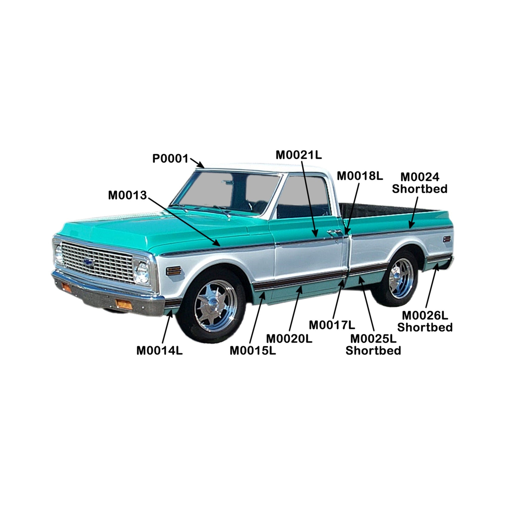 69-72 DR UPPER MOLDING LH-BK - Brothers Trucks Door Molding - Upper - Black - Left