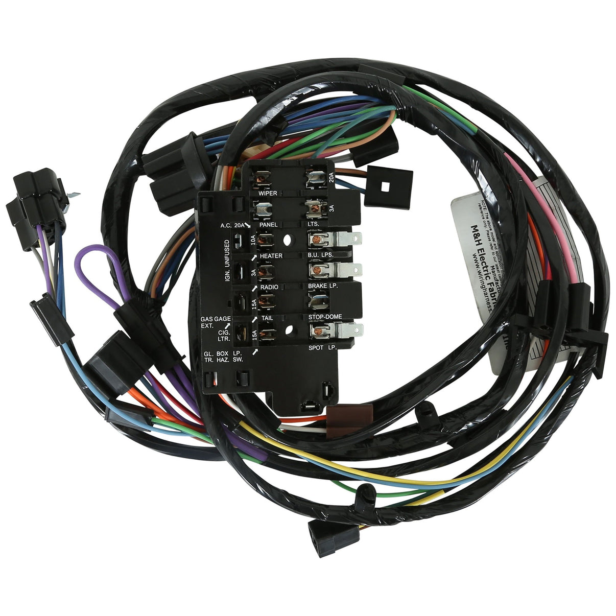 - Comprend le bloc de fusibles et les connecteurs pour l'interrupteur des phares, l'interrupteur d'allumage, le variateur d'intensité et tous les connecteurs du tablier.