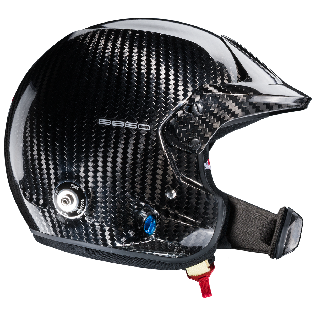 La visière réglable permet de la relever ou de l'abaisser pour une visibilité optimale même par faible ensoleillement. Compatible avec les visières courtes et les systèmes d'intercom WRC, elle est livrée avec des fixations HANS préinstallées.