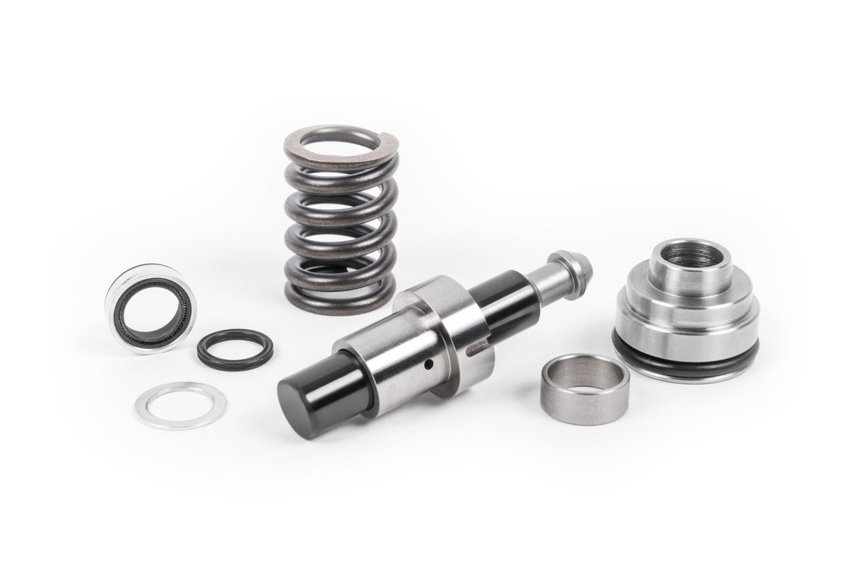 The HPFP internals must be machined to extreme tolerances and installed in a clean environment or the pump can easily fail. Dimensional tolerances on the APR HPFP are as tight as .00004" and geometric tolerances are as tight as .00005". The plunger and barrel are created from certified and heat-treated bearing-grade stainless steel and the plunger undergoes a special diamond like coating process for exceptional surfaces hardness and ultra-reliable operation. To prevent float associated with altering the plunger's mass, APR supplies each unit with a properly specified spring. All necessary internal seals are replaced.